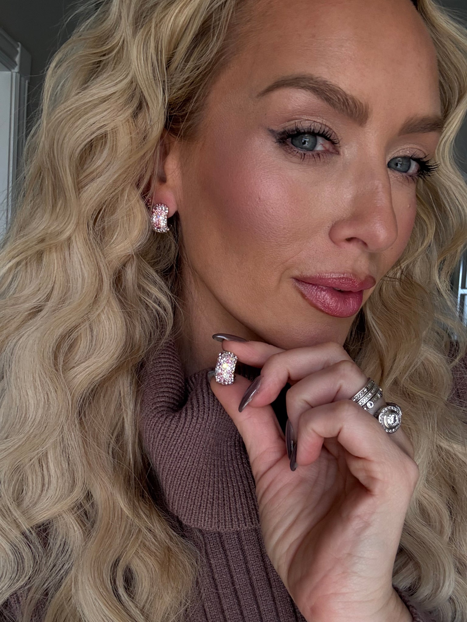 The Cotton Candy Huggies are a pastel dream — a swirl of pink, blue, and iridescent crystals that sparkle with every turn of your head. Their chunky silhouette gives them that perfect boho touch while the soft, candy-colored stones keep them playful and sweet. Lightweight, easy, and endlessly charming, these huggies instantly brighten your outfit (and your mood).