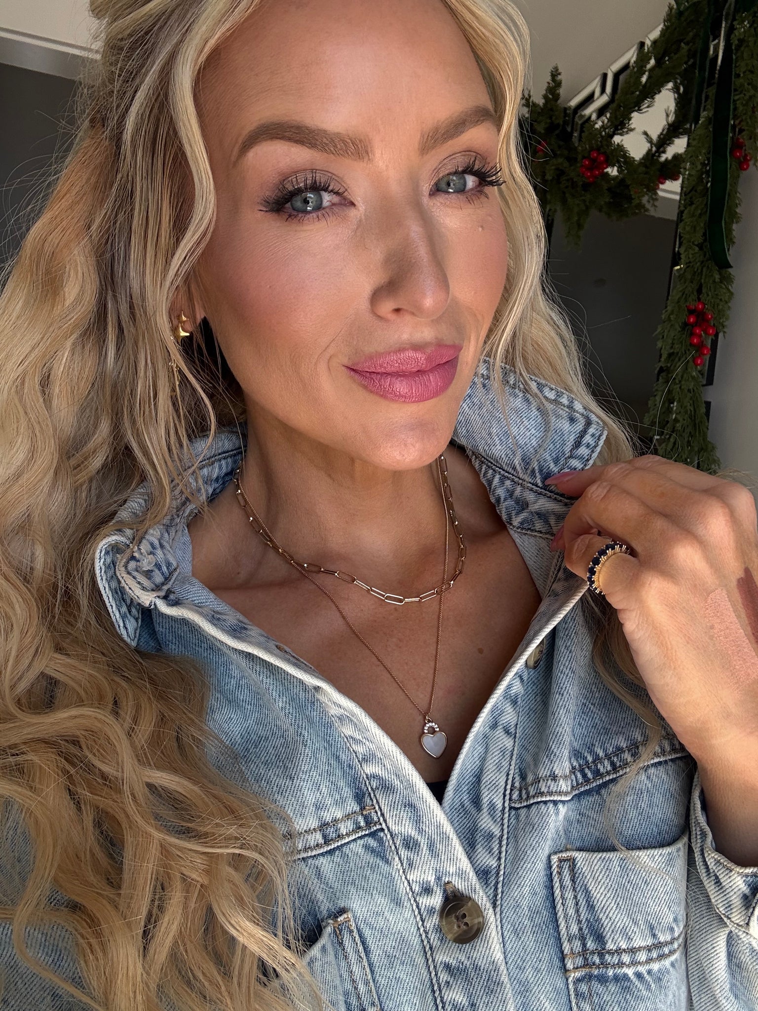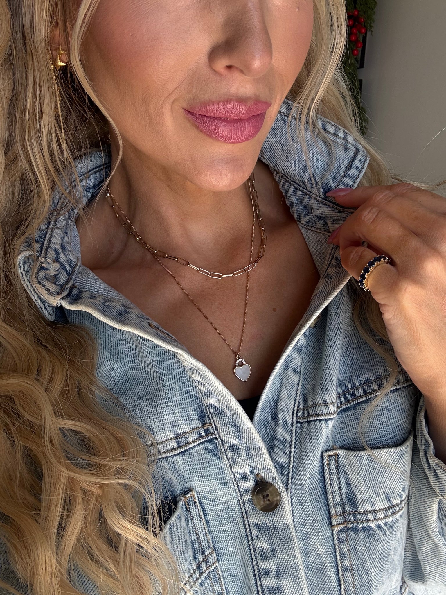 This Paperclip Heart Duo is not just a fashion statement, but also a match made in heaven for your jewelry collection. With a 16 and 17 inch white quartz heart necklace duo, this natural stone accessory is both stylish and durable with its 18 karat gold coding. Elevate your look and make a lasting statement.
