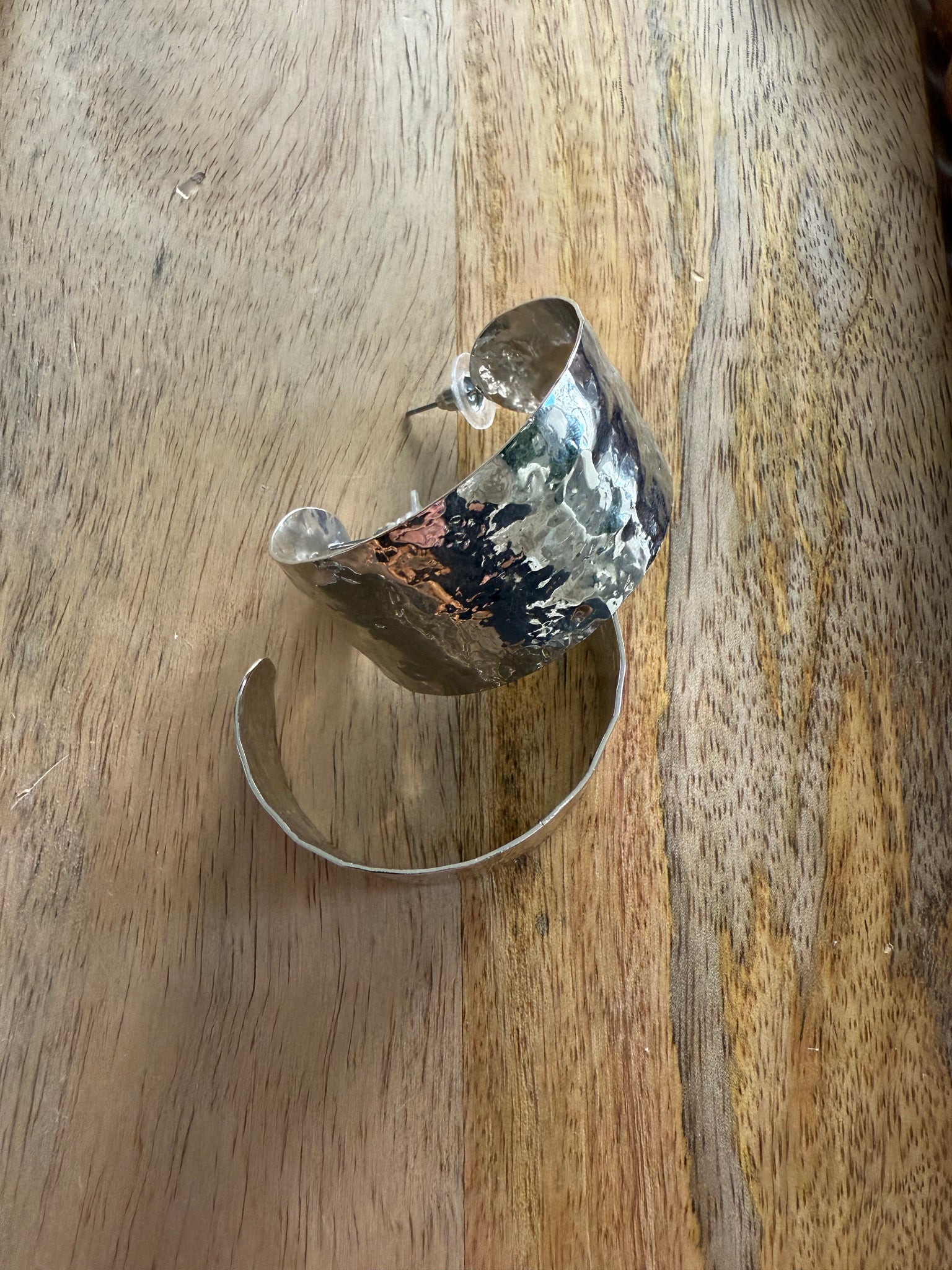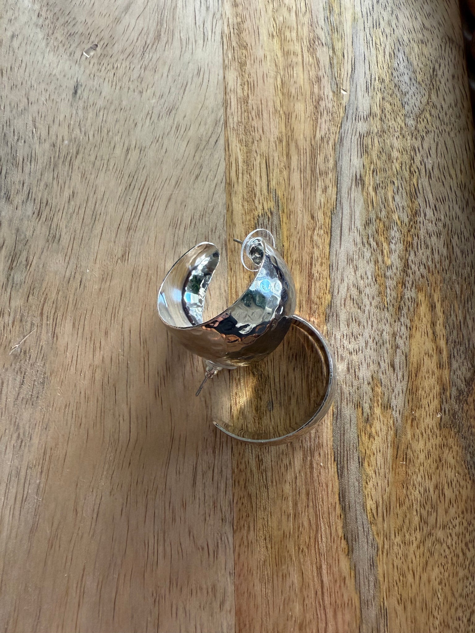 The Silver Mesa Hoops bring an effortless, earthy glamour to any outfit. Their hammered, high-shine finish gives that natural, handcrafted look while still feeling sleek and modern. Lightweight and eye-catching, these half-hoops make a statement without overwhelming your style. Perfect for holiday parties, winter sweaters, or gifting to someone who loves boutique, artisan-inspired pieces.