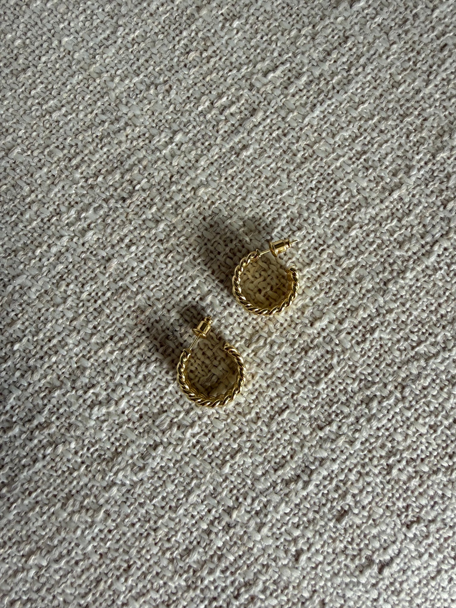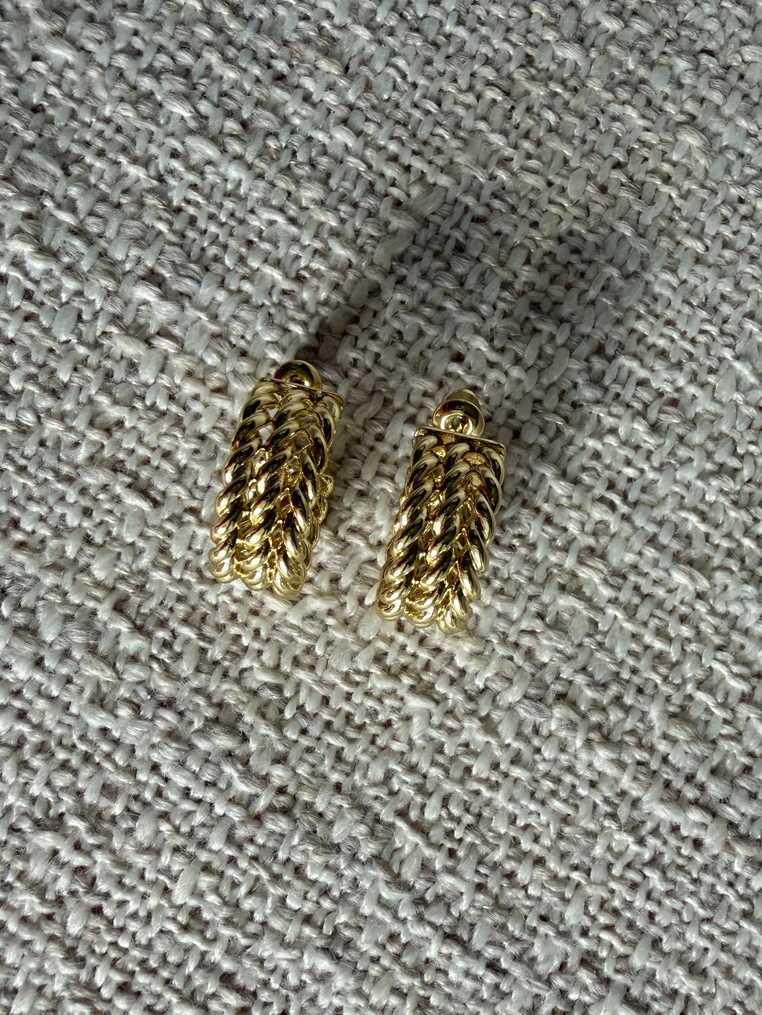 The Triple Twist Hoops feature an elegant woven design that catches the light beautifully while adding subtle dimension. Their medium size makes them perfect for everyday wear while still feeling polished and elevated.