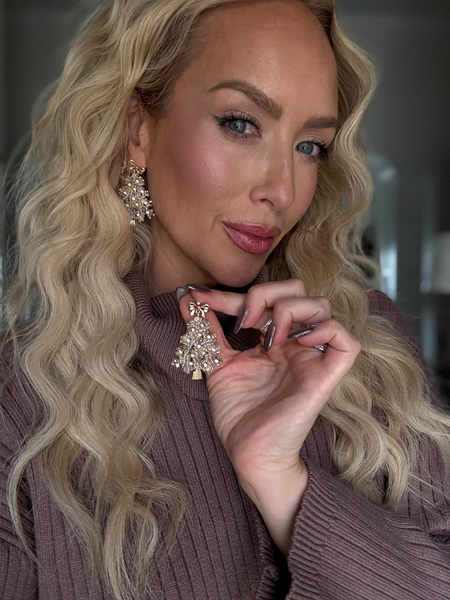 The Sparkle Tree Earrings are the ultimate holiday statement — handcrafted crystal bead clusters shaped into a shimmering Christmas tree, finished with a dainty gold bow on top. They’re festive without being kitschy, lightweight enough for all-day wear, and sparkly enough to elevate every holiday party outfit. A must-have for December and a perfect gift for anyone who loves a little holiday magic.